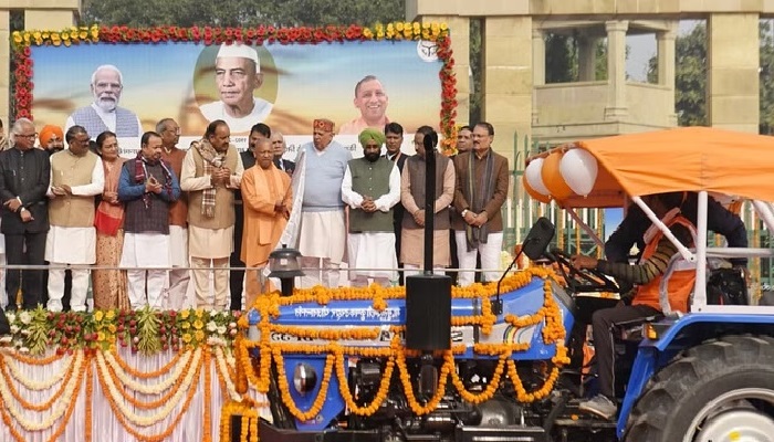 लखनऊ | 23 दिसंबर 2025 — आज सुबह राजधानी लखनऊ की सड़कों पर अन्नदाताओं की मुस्कान का सूरज चमक उठा। उत्तर प्रदेश के मुख्यमंत्री योगी आदित्यनाथ ने पूर्व प्रधानमंत्री चौधरी चरण सिंह की जयंती के मौके पर आयोजित किसान सम्मान दिवस में सैकड़ों किसानों को ट्रैक्टर की चाबी खुद हाथों में पकड़ाई, उनकी मेहनत के सम्मान में यह बड़ा तोहफा दिया गया।