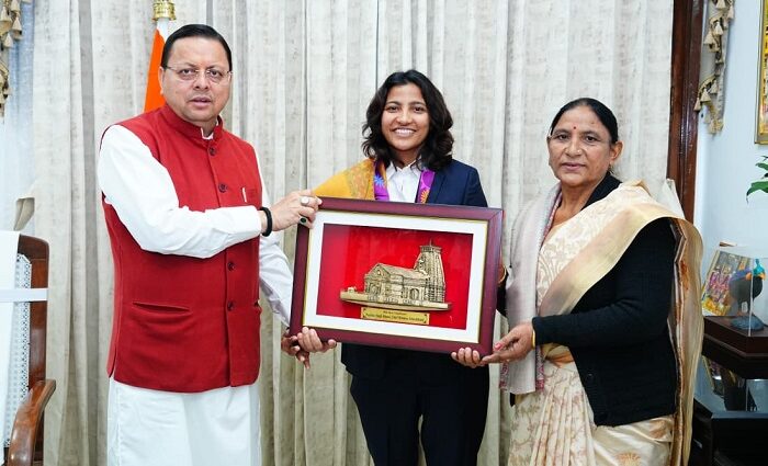 उत्तराखंड की धरती ने एक बार फिर कमाल कर दिखाया है। महिला क्रिकेट विश्व कप विजेता टीम की सदस्य स्नेह राणा ने आज मुख्यमंत्री आवास पहुंचकर मुख्यमंत्री पुष्कर सिंह धामी से शिष्टाचार भेंट की।